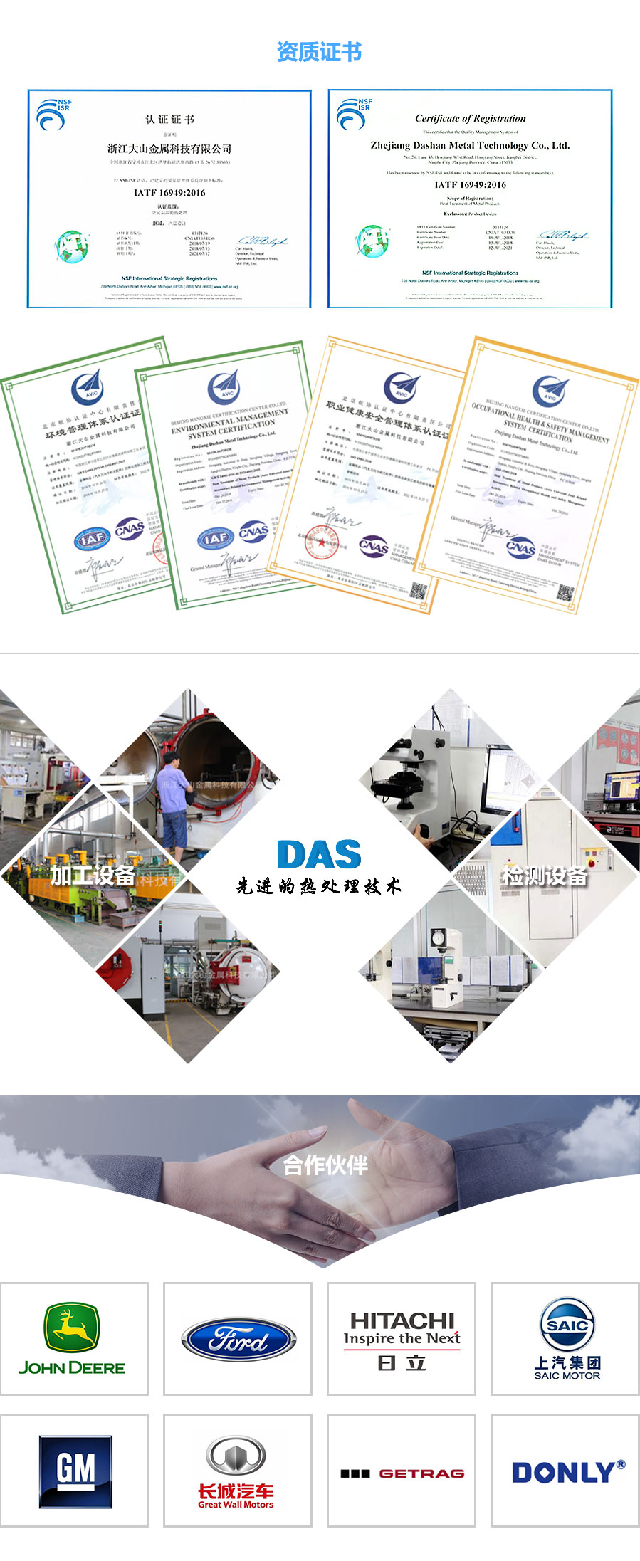 證書 IATF16949:2016質(zhì)量管理體系認證;GB/T 24001-2016 idt ISO14001:2015 環(huán)境質(zhì)量管理體系認證;